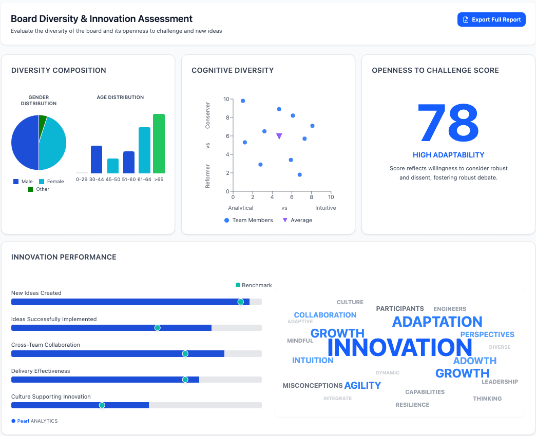 Evaluate the diversity of the board and its openness to challenge and new ideas.